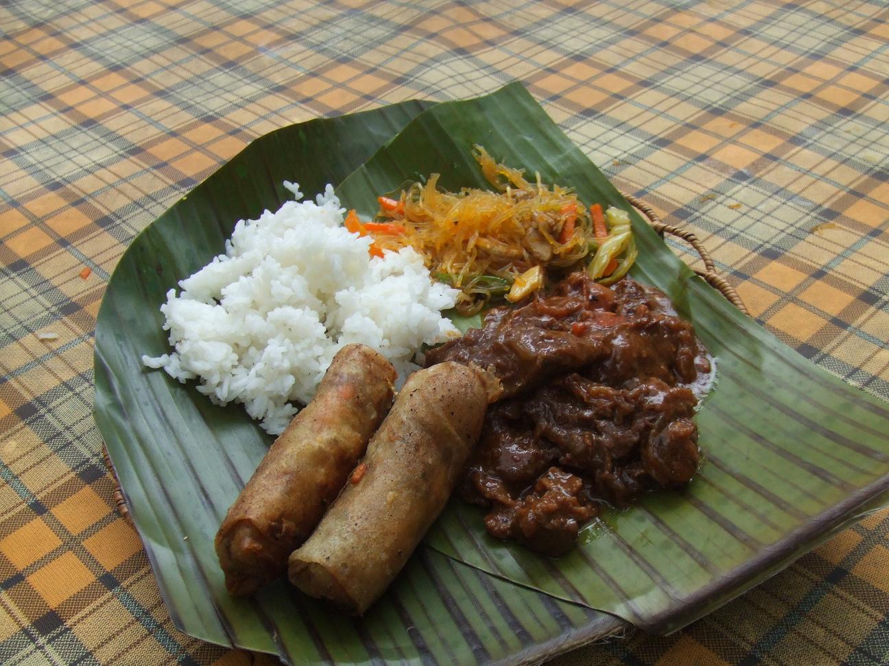 Lumpia Cook Sauce Gallery Kosher Company Contact <Last Picture Next Picture> Lumpia with beef caldereta, pancit (noodles), and rice